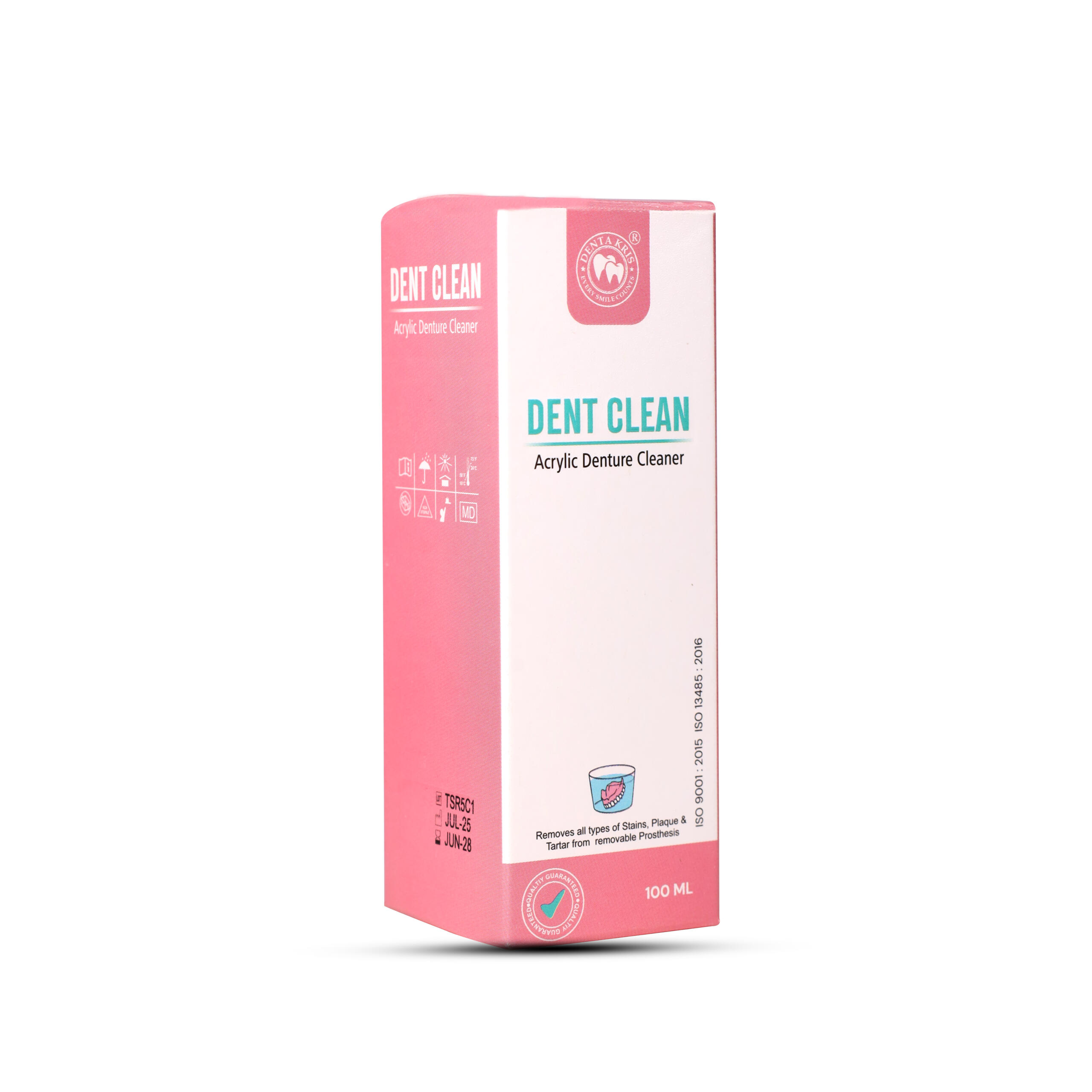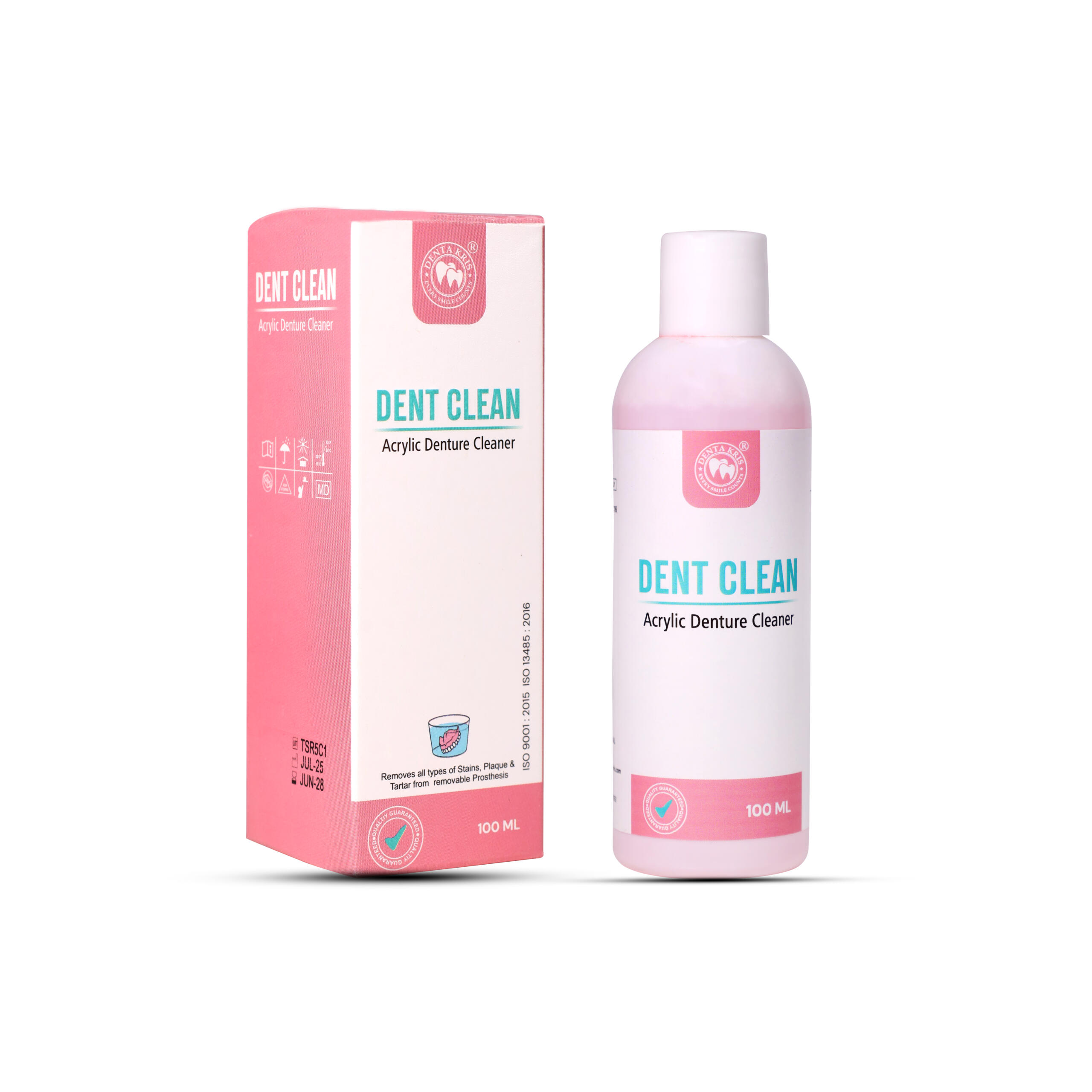Description: Dent Clean contains mild acids and disinfectants for cleaning & deodorization of removable orthodontic braces, prosthesis, and dentures without damage of its original shade. Plaque and tartar are scraped from the surface.