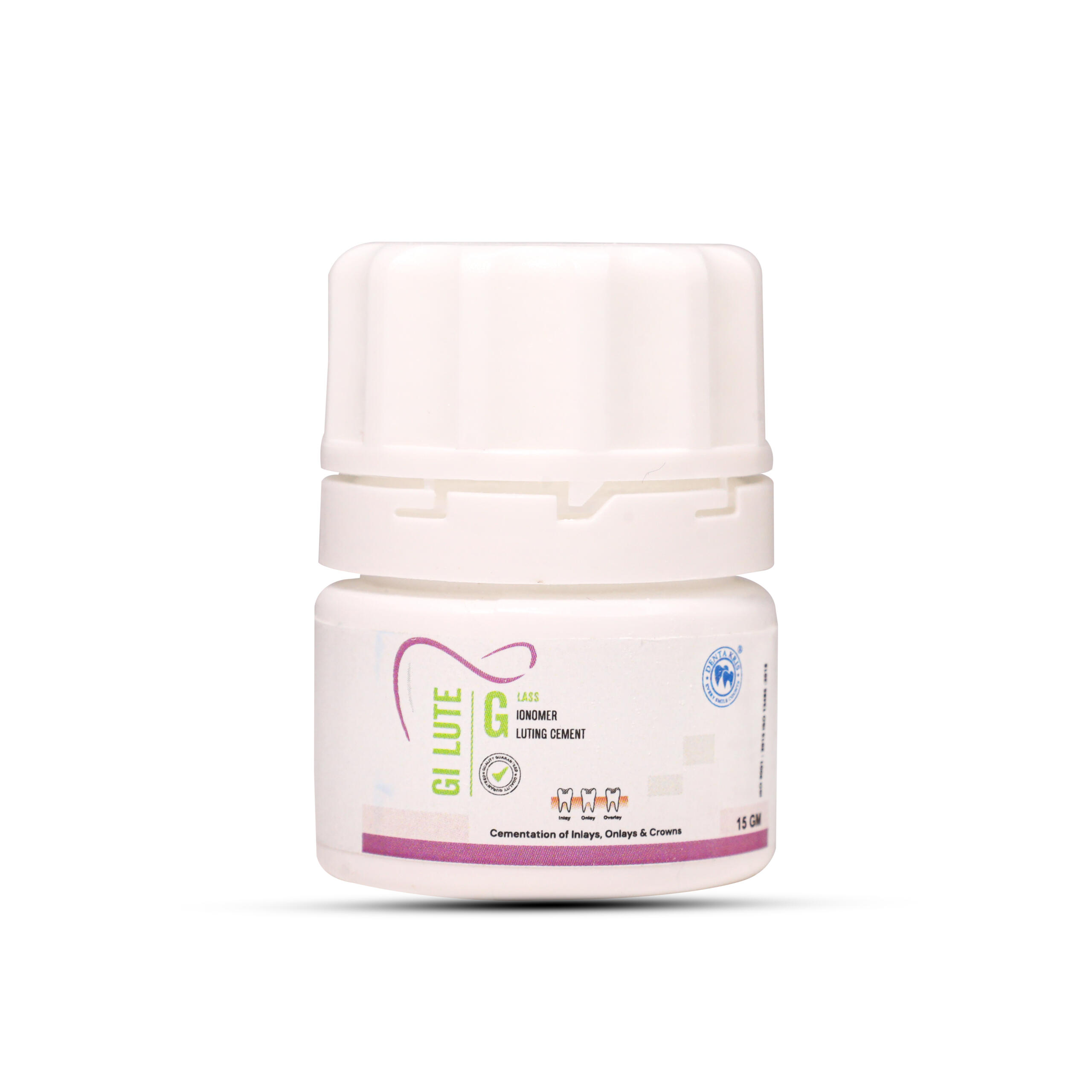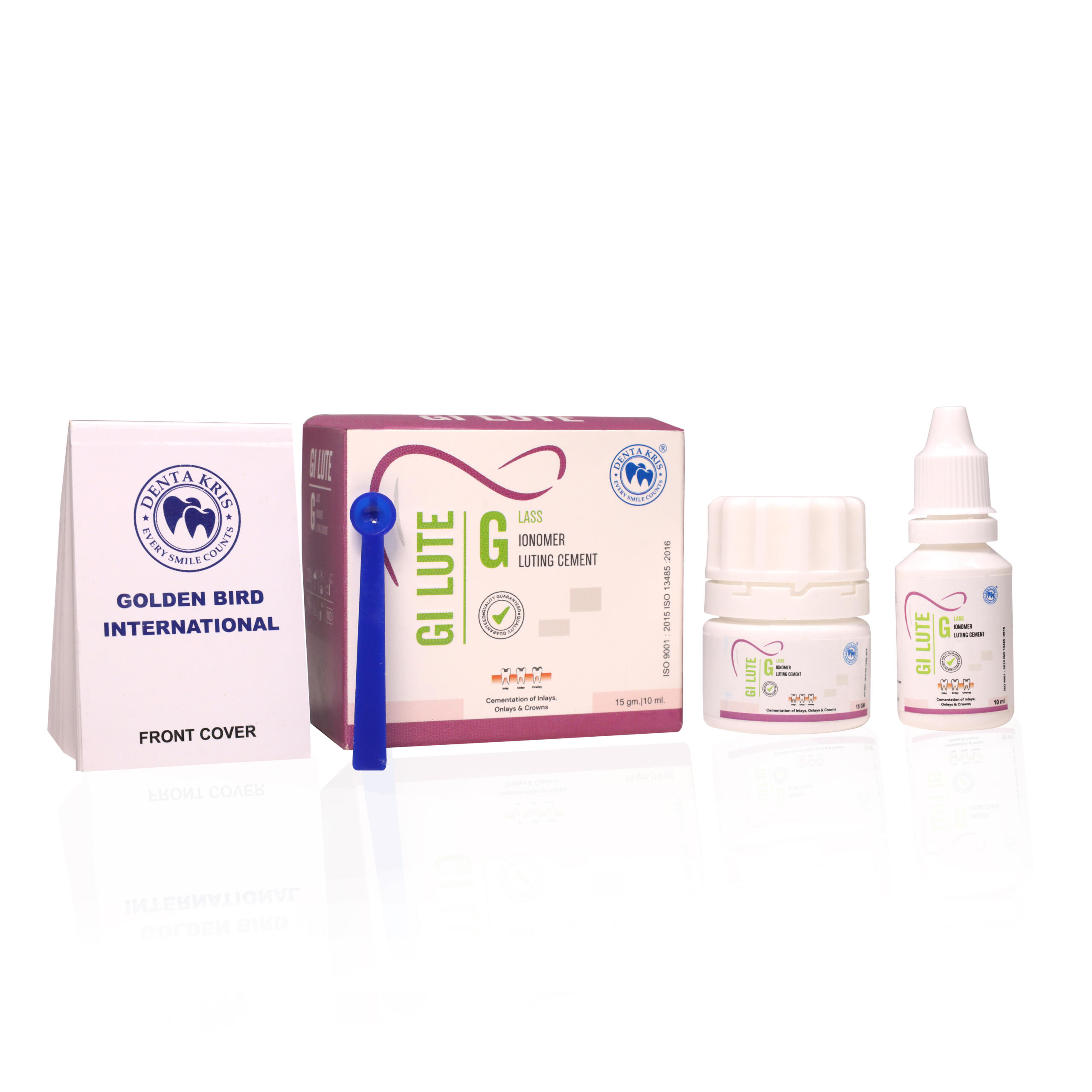 Description: G.I Lute is used as an adhesive in orthodontic works; it is made up of radiopaque fine silicate glass-powder and bonds which provides a tight seal between the internal tooth and the surrounding environment. It acts as a sealant, allowing the tooth to remain protected. Fill and repair the class III, class V cavities and wedge shaped defects, Caries and linear repair, fixation of crown, bridges and metal orthodontic brackets. High compressive strength, low coefficient of expansion, good marginal seal, stable in oral cavity, insoluble, non-polluting, non-irritating, sufficient work time.