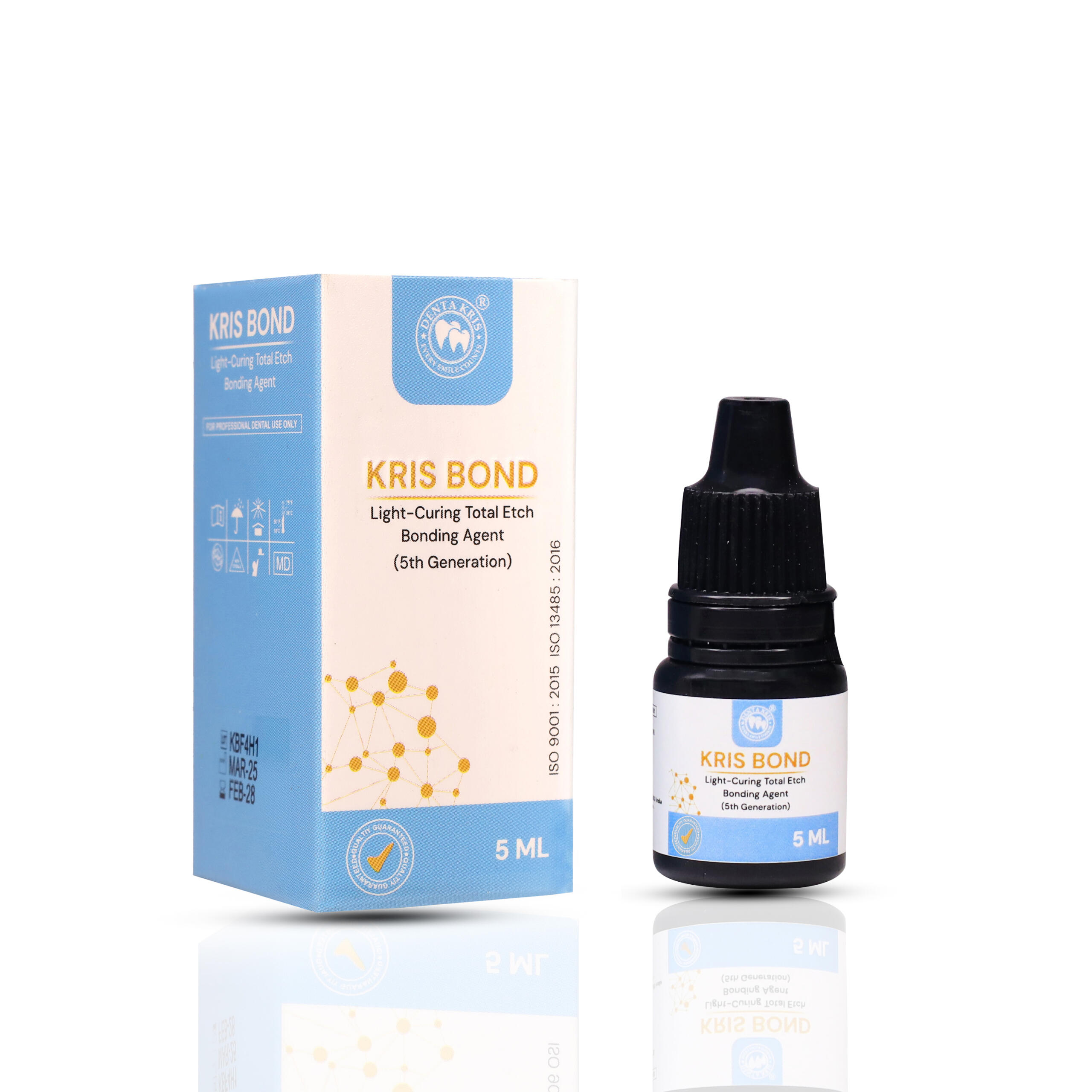 Description: Kris Bond is a light-curing, universal 5th generation adhesive offers optimal adhesion to dentine and enamel. It also improves the adhesion between Glass Ionomer cements and composite fillings in the sandwich technique. It is compatible with all sealing materials, Needs pre-engraving, Exceptional fixing strength.