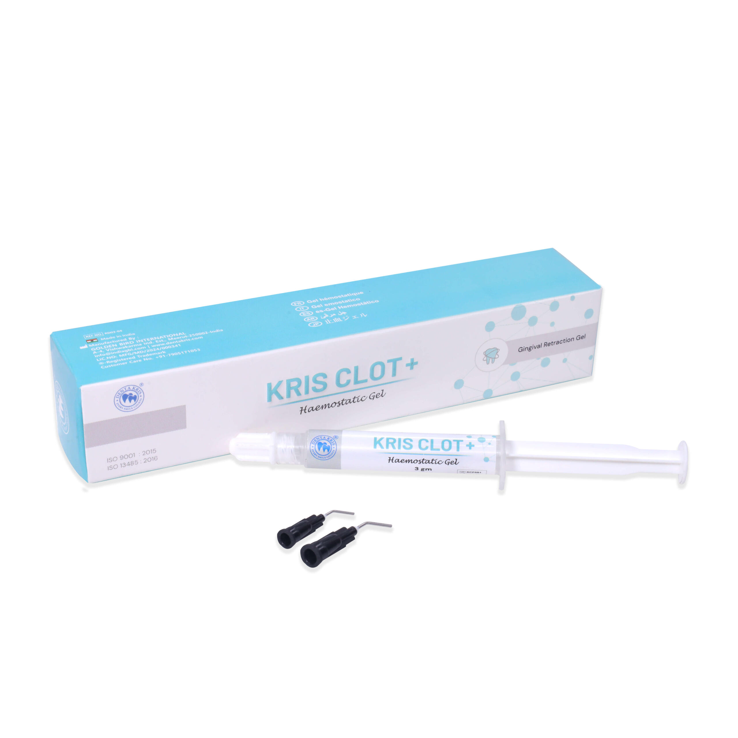 Description: Kris Clot + is a non-toxic, non-dripping gelcontaining 25% buffered Aluminum Chloride. Used to stopsbleeding quickly, Ideal viscosity not allow to flow ontosurrounding tissues. Non – staining, non –irritating and easilywashed off. Generally used for capillary bleeding & apicalbleeding.