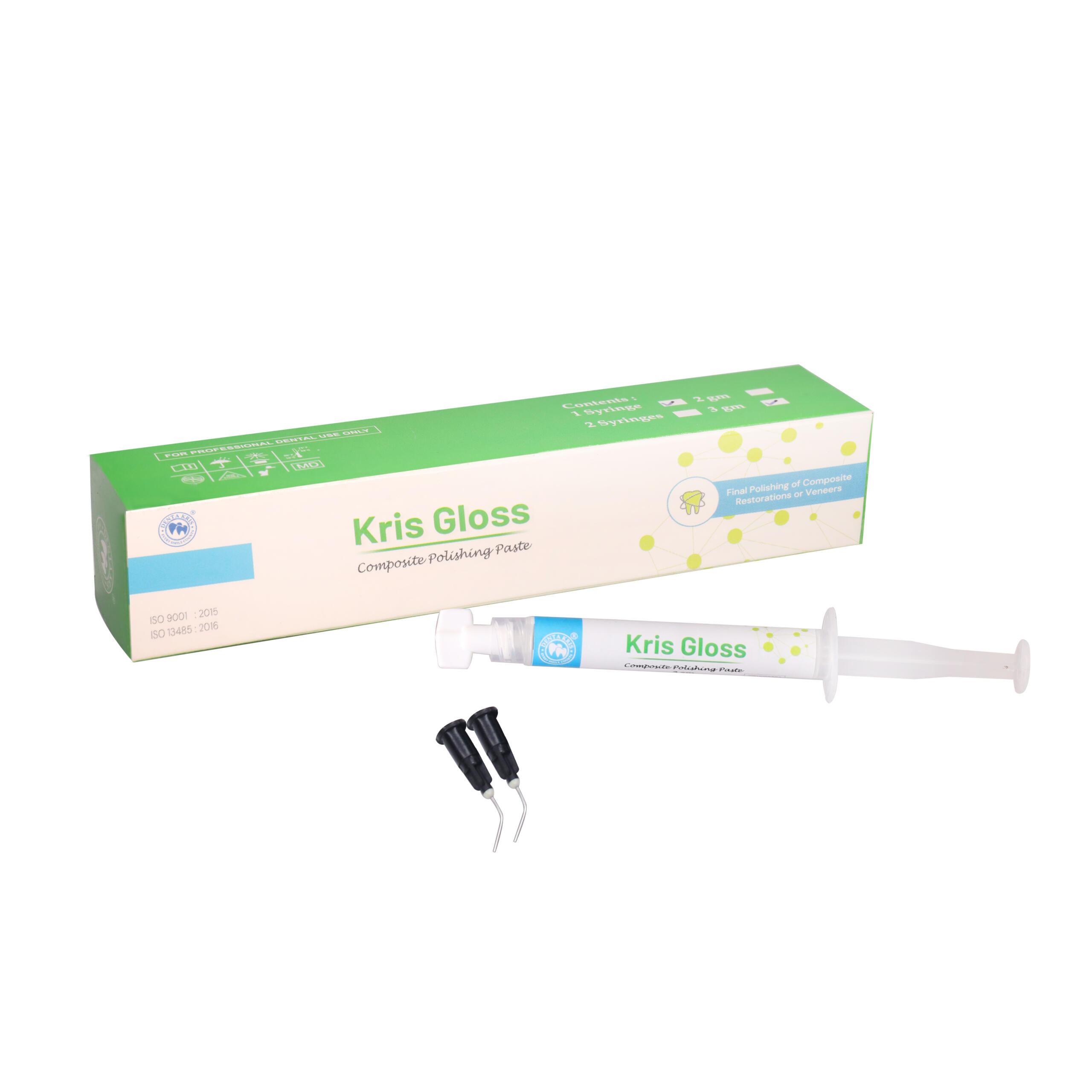 Description: To give the composite resin a natural enamel-like glossy look, it is recommended to use a small-grain diamond pastes or aluminum oxide pastes. These pastes should be applied with a felt disc or a soft-brushed brush, to not scratch the surface of the composite resin.