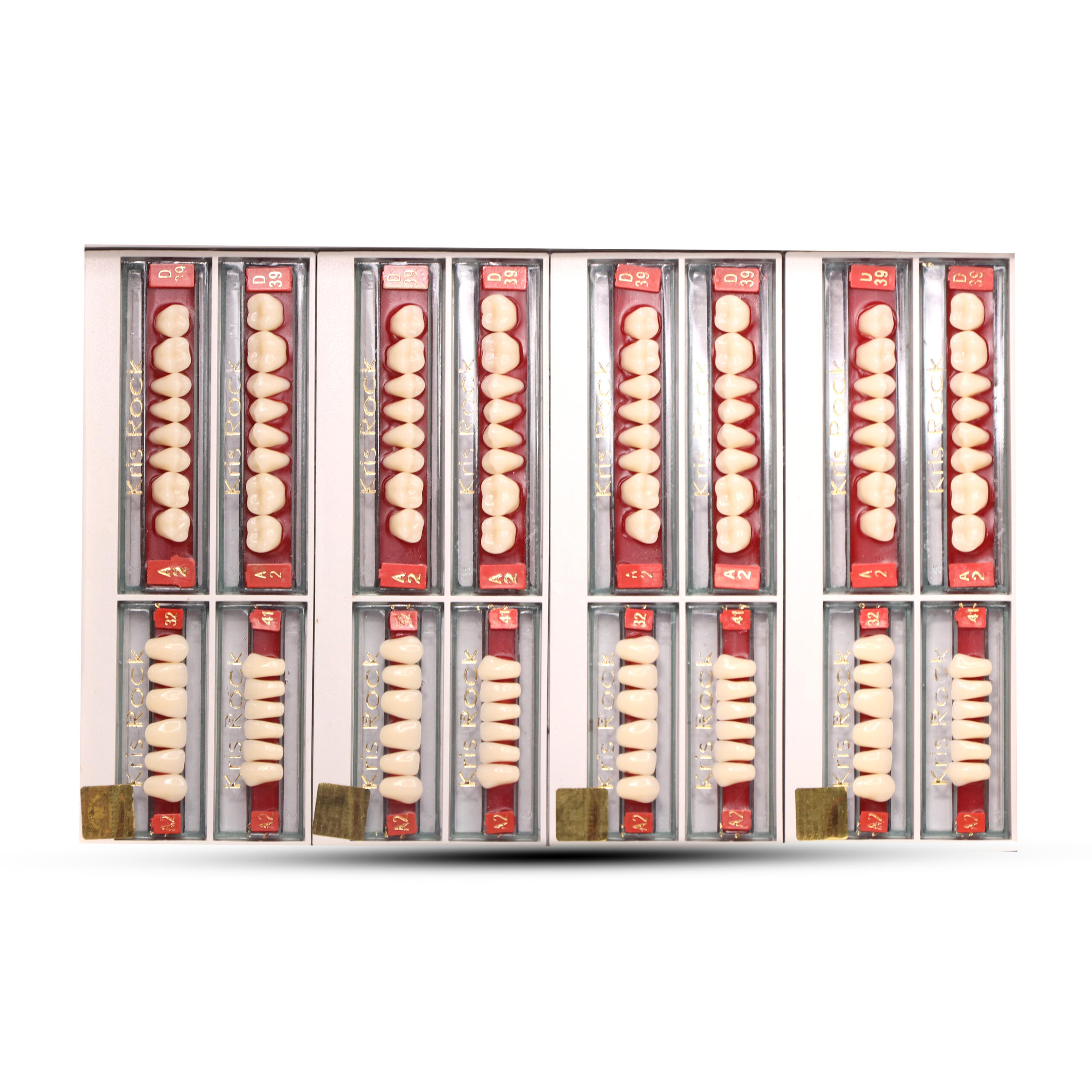 Description: Double-layered, double-shaded and cross-linked teeth. Nonporous, dense, vacuum-processed, hard. Solvent and abrasion resistant. Perfect blend of denture and enamel.